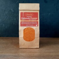 Zutaten: Speisesalz (Tiefensalz aus Natursole), Paprika edelsüß, Zwiebeln getrocknet, Knoblauch getrocknet, Curry, Kreuzkümmel, Pfeffer, Muskatblüte, Chilischoten getrocknet